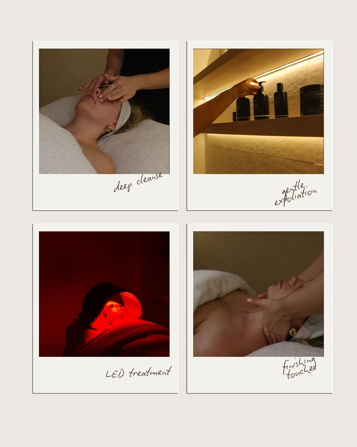 Deep Cleanse – We start by removing makeup, oil, and impurities to ensure your skin is prepped for the light.